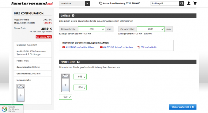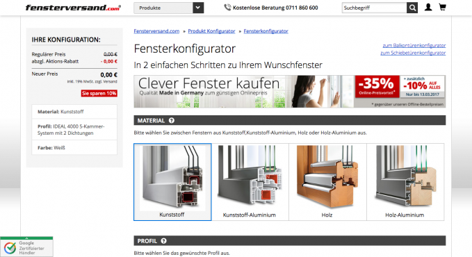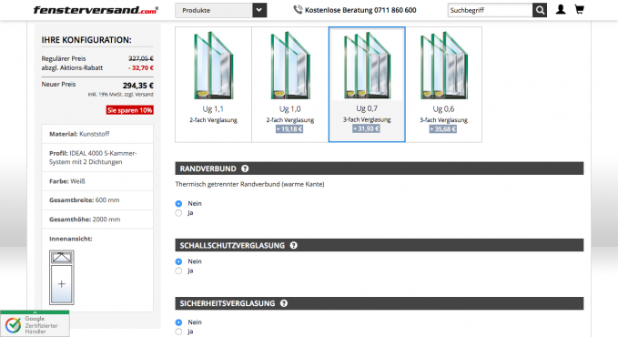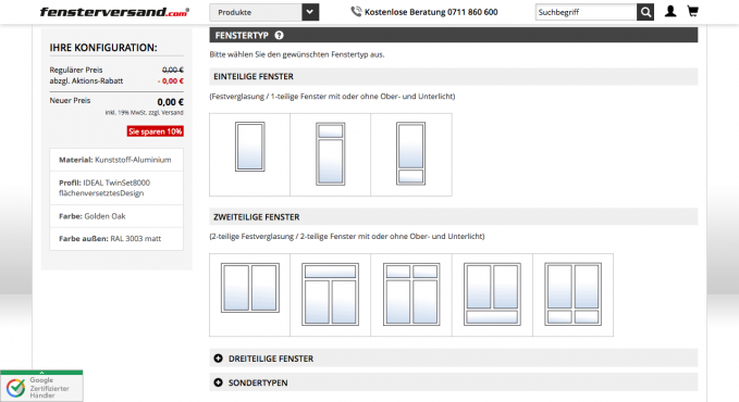 Der Konfigurator ist ideal für Kunden, die sich tief mit der Marterie auseinandersetzen und sich ein individuelles Fenster konfigurieren möchten.