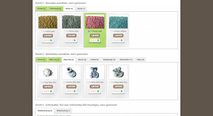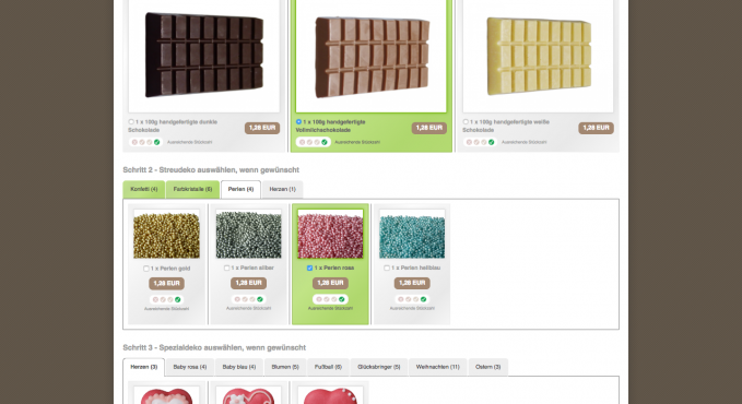 Der Schokoladen-Konfigurator eignet sich für Personen, die aus einer breiten Auswahl an Dekoelementen auswählen möchten.