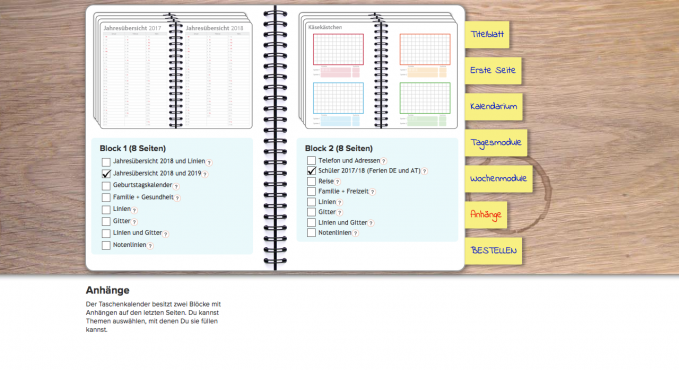 Mein-Taschenkalender.com Kalender-Konfigurator