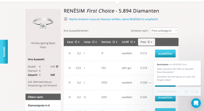Der "Konfigurator" gleicht eher einem Ring-Finder, als einer individuellen Konfiguration. Dennoch bietet der Konfigurator eine breite Palette an möglichen Designs.
