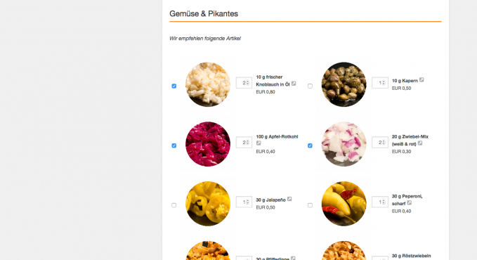 Man kann zwischen drei verschiedenen Rollbraten wählen, denen man im nächsten Schritt teilweise recht ausgefallene Zutaten hinzufügen kann. Zudem besteht die Möglichkeit einen Bratservice sowie passende Soßen mit zu bestellen. Der Individualisierungsgrad ist aufgrund der vielen möglichen Zutaten insgesamt gut.
