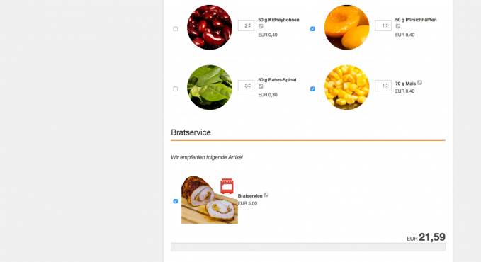 Es werden Bilder der Zutaten sowie ein Bild des nicht individualisierten Bratens angezeigt.