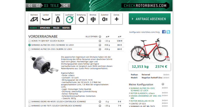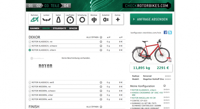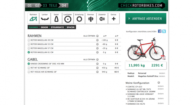 Rotorbikes Fahrrad-Konfigurator