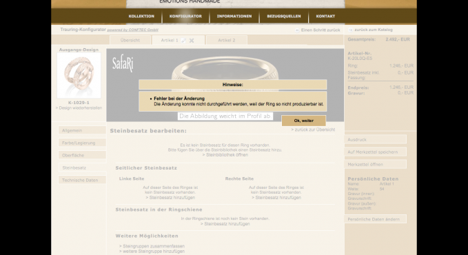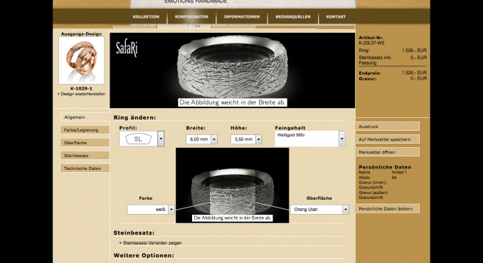 Der Konfigurator scheint identisch mit dem Acredo Trauring-Konfigurator.